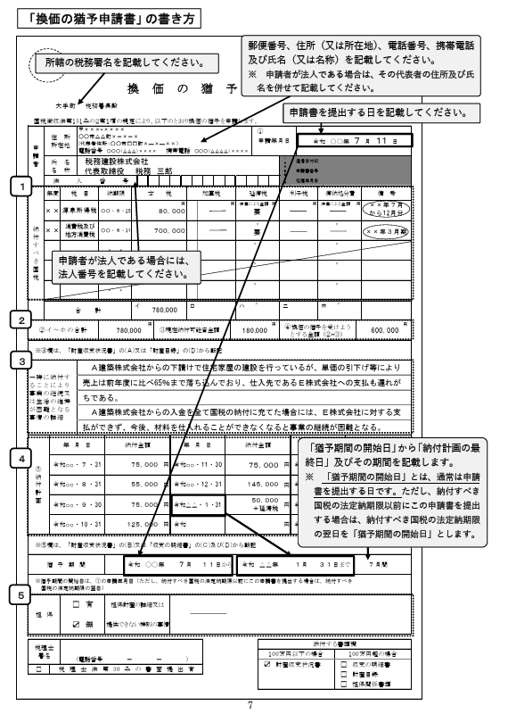 換価の猶予は、納税地を管轄する税務署へ申請書を提出して行います。